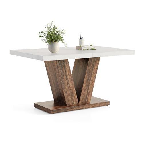 Modern ve şık tasarımıyla dikkat çeken bu yemek masası, doğal ahşap ve beyaz porselen kombinasyonuyla benzersiz bir görünüm sunuyor. Yaklaşık 120 cm genişliğindeki masa, dört kişinin rahatlıkla oturabileceği kullanışlı bir boyuta sahip.