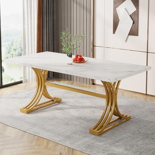 Altın Desenli Beyaz Mermer Görünümlü Yemek Masası