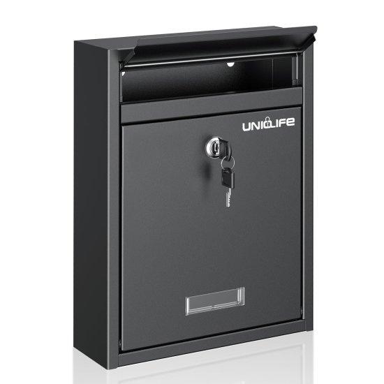 Kompakt boyutları sayesinde dar alanlara da rahatlıkla yerleştirilebilir. Çelik gövdesi, mektup ve küçük paketlerinizi güvenle saklamanıza olanak tanır. Siyah rengi, hemen hemen her ev dış cephesiyle uyum sağlayarak modern bir görünüm sunar.