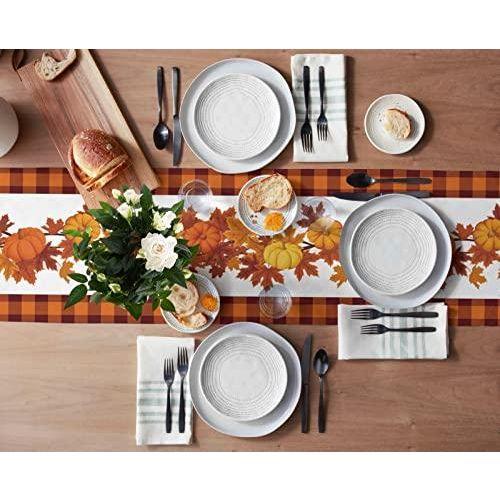 Bu masa örtüsü, sonbaharın sıcak ve zengin renklerini sofranıza taşıyan şık bir dekoratif aksesuar. Beyaz zeminin üzerinde turuncu, sarı ve kahverengi tonlarında yapraklar ve kabaklar ile süslenmiş, doğal ve zarif bir tasarıma sahip.
