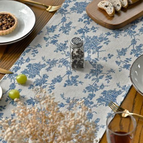 Bu masa örtüsü, geleneksel desenli dokuma bir runner’dır. Açık bej zemin üzerine soft mavi çiçek desenleriyle klasik bir şıklık yakalar. %60 pamuk, %40 keten ve polyester karışımından üretilmiştir.