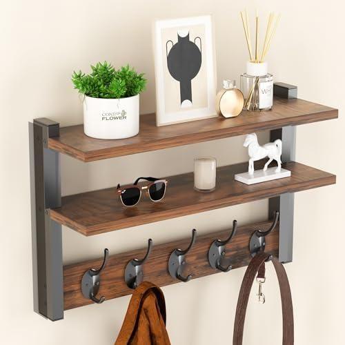 Bu dekoratif ürün, modern endüstriyel tarzın şık bir yansıması olarak ev düzenlemelerine pratik bir çözüm sunmaktadır. İki katlı ahşap rafları ve altı sağlam askılı tasarımıyla, yaşam alanlarınıza hem estetik hem de işlevsellik katmaktadır.