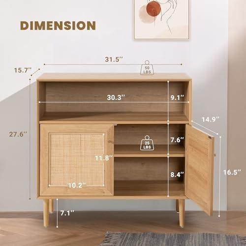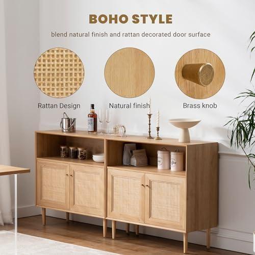 Bu dekoratif aksesuar, geleneksel ve modern stilleri başarıyla bir araya getiren çok fonksiyonlu bir konsoldur. Açık ahşap tonlarında tasarlanan ürün, doğal hasır desenli kapıları ve zarif metal ayakları ile dikkat çekiyor.