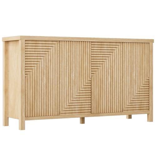 Bu dekoratif konsol dolabı, modern iç mekan tasarımına zarafet katan özel bir mobilya parçasıdır. Ahşap yüzeyi, dalgalı ve geometrik çizgilerle dekore edilmiş olup, dokulu ve çok katmanlı bir görünüm sergiler. Açık bej tonundaki rengi, minimal ve şık bir estetik yaklaşım sunmaktadır.
