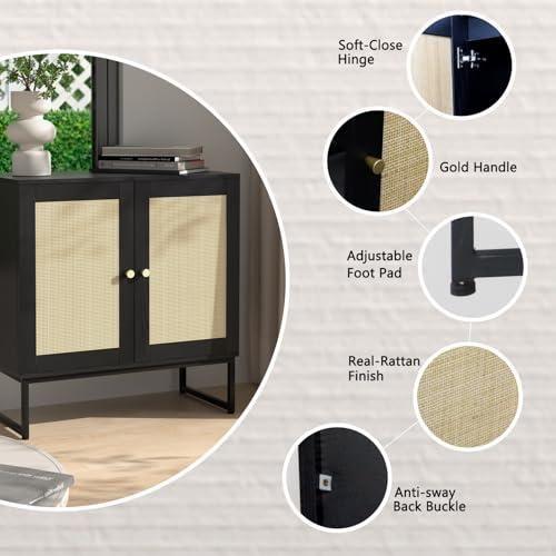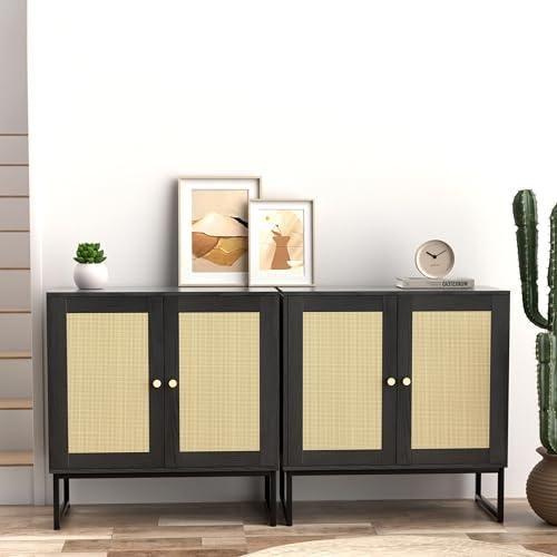Modern ve şık bir dekoratif aksesuar olarak tasarlanan bu rattan konsol dolap, çağdaş iç mekan düzenlemeleri için ideal bir seçenektir. Siyah ahşap çerçeve ve açık ton hasır dokulu kapakları ile minimalist bir görünüm sergiler.