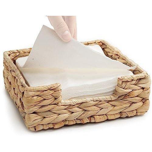 Yaklaşık 20x20x5 cm boyutlarında kompakt bir tasarıma sahiptir. Hasır malzemenin dayanıklı ve esnek yapısı, ürünün uzun süre kullanılabilmesini sağlar. Kare formundaki peçetelik, modern ve bohem tarzı destekleyen nötr bir aksesuar olarak mutfak tezgahları, yemek masaları veya salon sehpaları için idealdir.