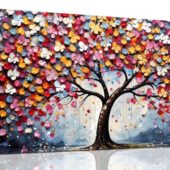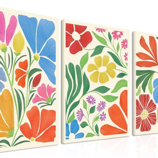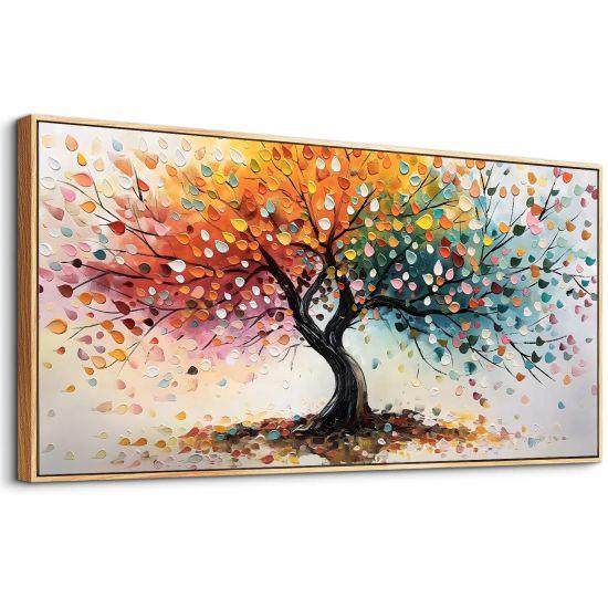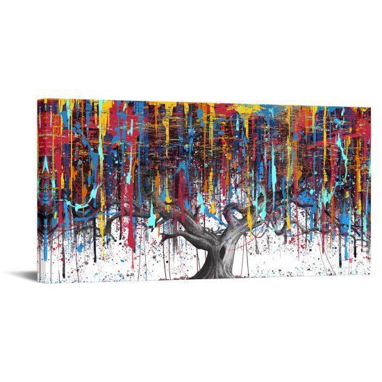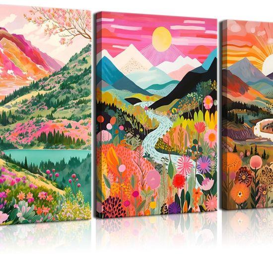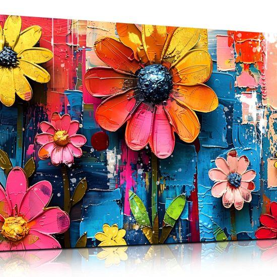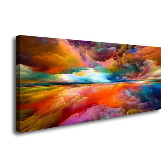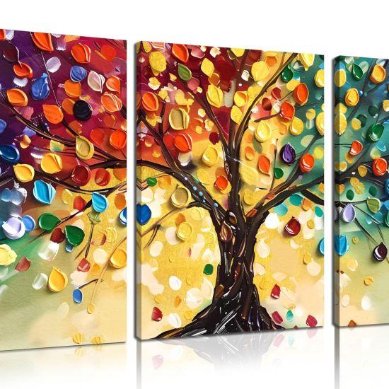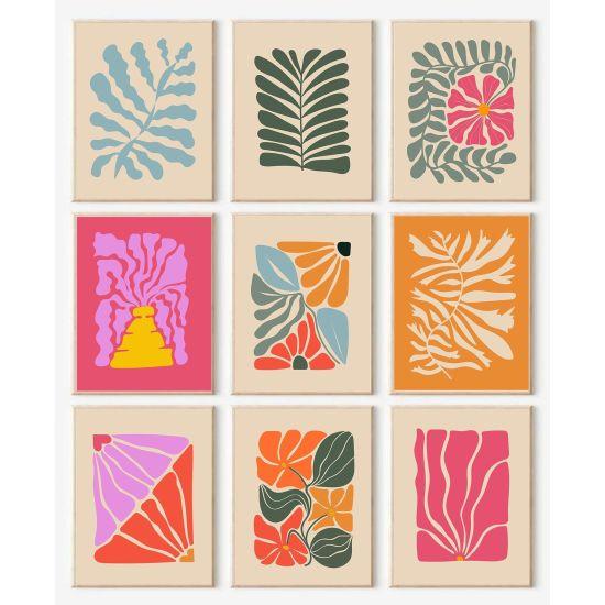 Renkli tablolar, ev dekorasyonunda merkezi bir odak noktası oluşturur. Turuncu kanepe ve minimalist dekorla mükemmel bir uyum içinde, mekana canlılık ve sanatsal bir dokunuş katıyor. Eser, izleyiciye hayal gücünü kullanma ve kendi yorumunu yapma özgürlüğü veren, duyguları harekete geçiren bir görsel şölen sunuyor.