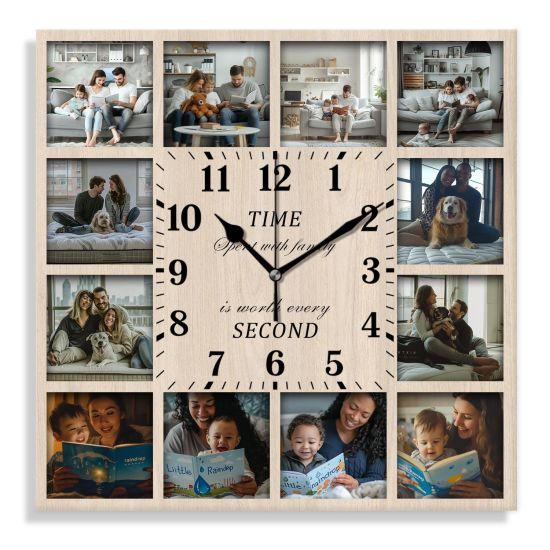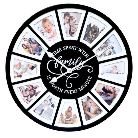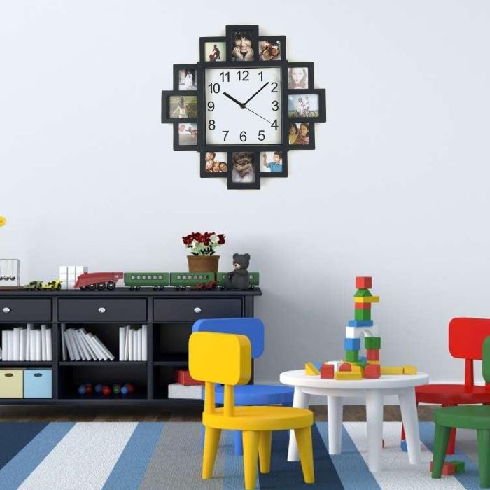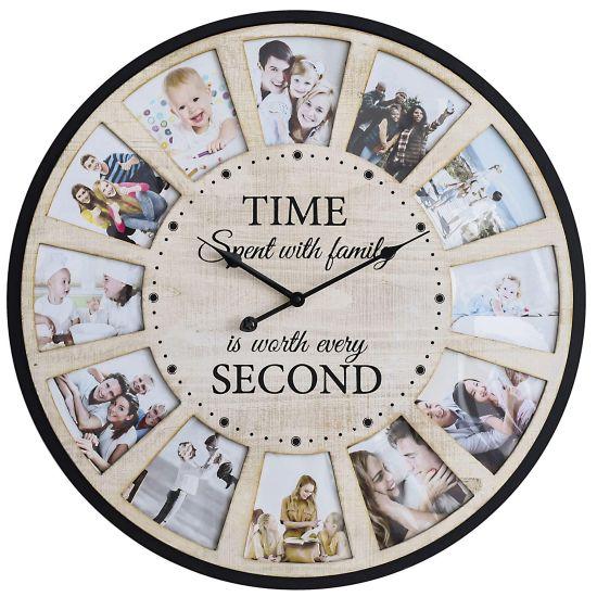 Saat, ortasında bulunan büyük ve okunaklı rakamlı kadranıyla zamanı net bir şekilde gösterir. Etrafındaki fotoğraf çerçeveleri ise aileniz, arkadaşlarınız veya unutulmaz anlarınızın fotoğraflarıyla doldurulabilir. Bu sayede zaman geçtikçe, en değerli anılarınızı her an göz önünde tutabilirsiniz.