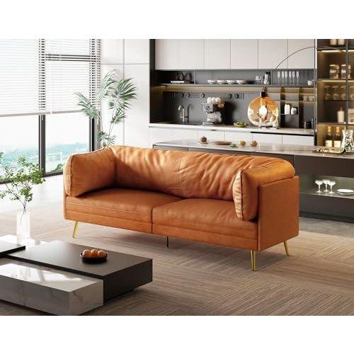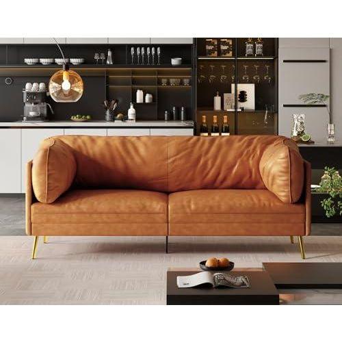 Altın Ayaklı Turuncu Deri Retro Koltuk