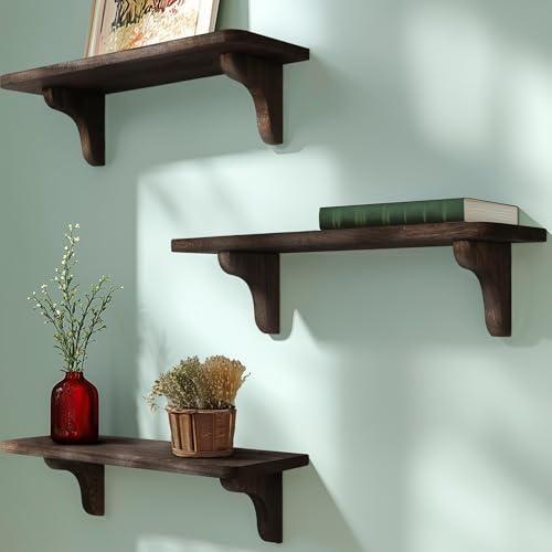 Koyu Kahverengi Endüstriyel Ahşap Rustik Duvar Rafı