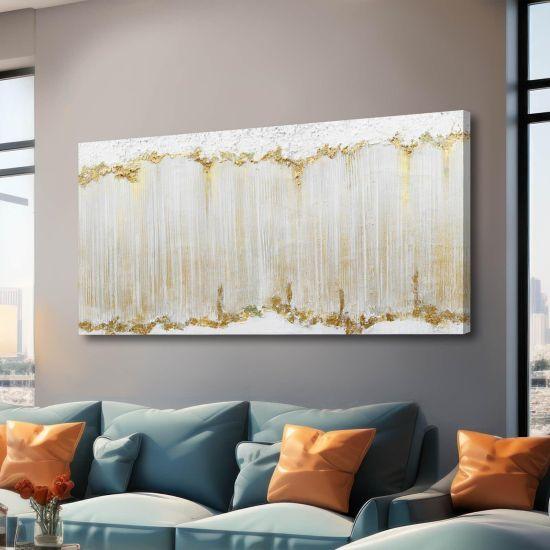 Bu büyük tablo, modern bir evin salonunda hem odak noktası olabilecek hem de mekana doğanın huzur verici enerjisini taşıyabilecek nitelikte bir sanat eseridir. Renk paleti ve kompozisyonu sayesinde, farklı dekorasyon stillerine uyum sağlayabilir ve mekana canlılık katarken aynı zamanda sofistike bir hava yaratır.