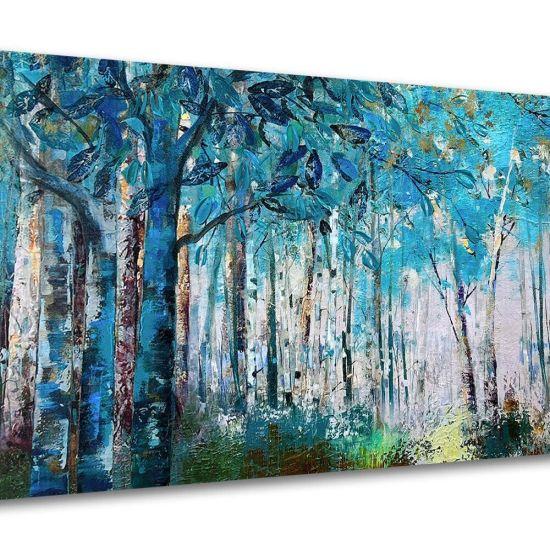 Ön plandaki ağaçlar, ince ve zarif gövdeleriyle dikey bir ritim oluştururken, yapraklar kalın boya katmanlarıyla uygulanmış impasto tekniğiyle resmedilmiş. Bu teknik, tabloya üç boyutlu bir doku kazandırıyor ve ışığın farklı açılardan vurmasıyla sürekli değişen bir görsel şölen sunuyor.