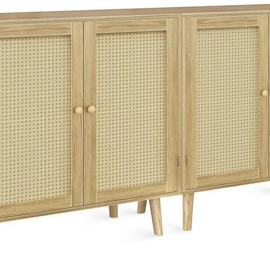 Salon, giriş holü veya yatak odası gibi farklı alanlarda kullanılabilecek çok yönlü bir depolama ünitesi. Hasır desenli kapıları sayesinde hem modern hem de doğal bir görünüm sergiliyor. Ahşap malzemesi dayanıklı ve uzun ömürlü.