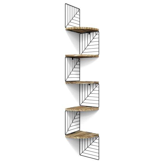 Bu ürün, modern iç mekanlara şık bir dokunuş getiren beş kademeli köşe duvar rafıdır. Endüstriyel ahşap ve metal kombinasyonuyla tasarlanmış olup, karbon siyahı rengiyle her ortama uyum sağlar.