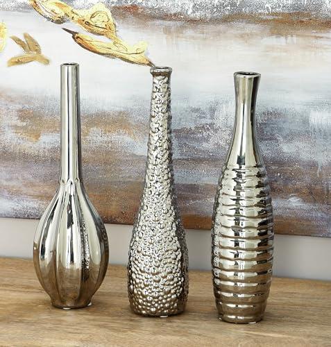 Gümüş Renkli Seramik Salon Vazo Seti