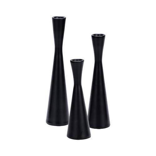 Set, üç farklı boyda şamdandan oluşur. Bu boyut çeşitliliği, masa üzerinde dinamik ve estetik bir görünüm yaratır. Siyah mat yüzeyi, modern ve minimalist dekorasyon tarzlarına mükemmel uyum sağlar. Şamdanların ince uzun gövdeleri ve zarif tasarımı, mekan içinde şık bir atmosfer oluşturur.