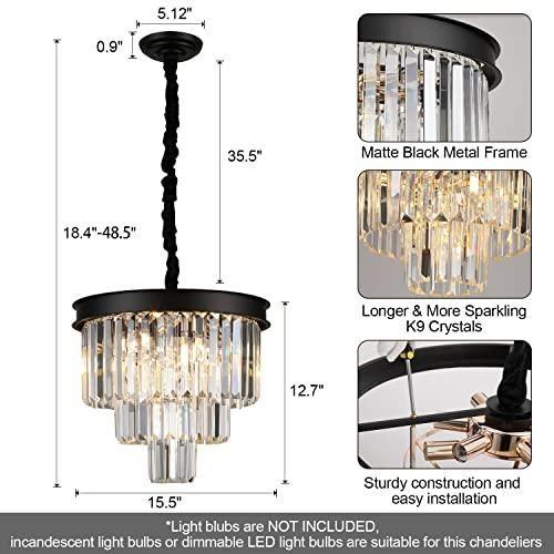 Kristal Siyah Çerçeveli Modern Ledli Sarkıt Avize