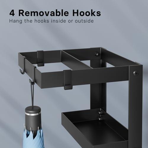 Ürün, farklı boyutlarda ve tiplerde şemsiyelerin düzenli bir şekilde depolanmasına olanak sağlıyor. Ana gövdede dikey olarak şemsiyeleri tutabilen ana bölüm bulunurken, yan tarafında dört adet çıkarılabilir askı kancası yer alıyor. Bu kancalar katlanabilir seyahat şemsiyeleri, bastonlar veya trekking sopaları için kullanışlı bir alan sunuyor.