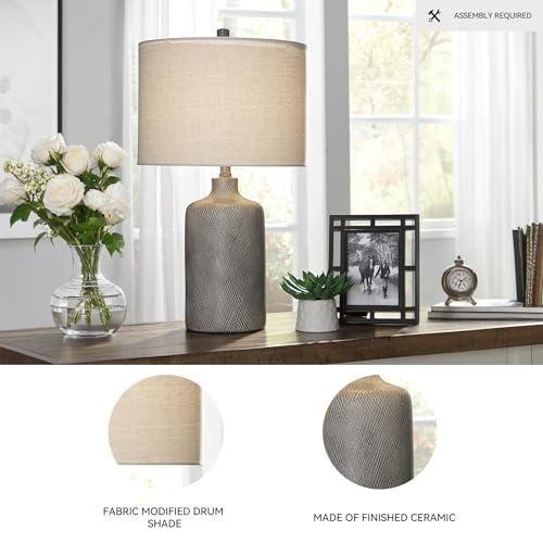 Bu abajur, modern iç mekân tasarımları için ideal bir dekoratif aksesuar olarak öne çıkıyor. Gri renkte seramik bir taban üzerine yumuşak dokulu bir kumaş başlık yerleştirilmiş. Dokulu yüzeyi, eski görünümlü antik bir etki yaratarak mekâna sıradışı bir karakter kazandırıyor.