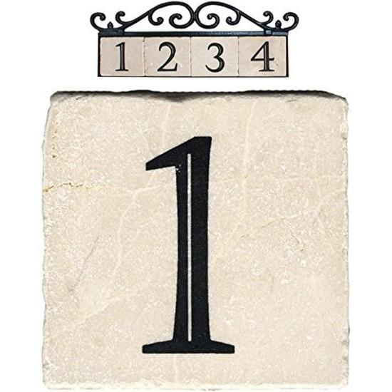 Ürün, 10 cm x 10 cm boyutlarında hassas bir şekilde tasarlanmış. Açık bej tonlarında mermer dokusuna sahip arka plan üzerinde siyah renkli iri rakamla üretilmiş. Üst kısımda ince ve zarif dövme demir görünümlü bir çerçeve bulunuyor. Bu çerçeve, 1-2-3-4 rakamlarını içeriyor ve toplam kompozisyona antik bir hava katıyor.