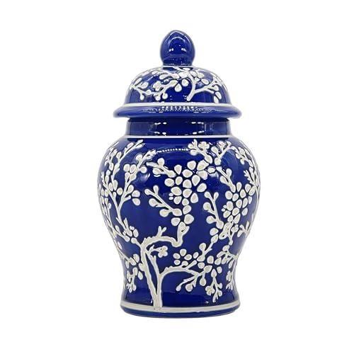 Bu zarif seramik küp, klasik Çin desenlerinin modern yorumunu sunuyor. Lacivert zemin üzerine beyaz çiçek ve dal motifleriyle süslenmiş küp, geleneksel Chinoiserie sanatının güzel bir örneğini yansıtır.