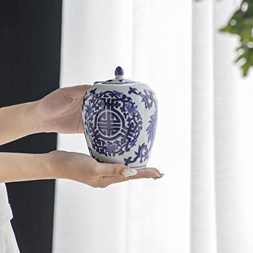 Mavi ve beyaz renk kombinasyonu, her tür iç mekana zarifçe uyum sağlayabilecek bir tasarıma sahip. Parlak ve pürüzsüz seramik yüzeyi, ışığı güzel bir şekilde yansıtıyor. Küpün kapaklı yapısı, hem dekoratif hem de işlevsel özellikler sunuyor.