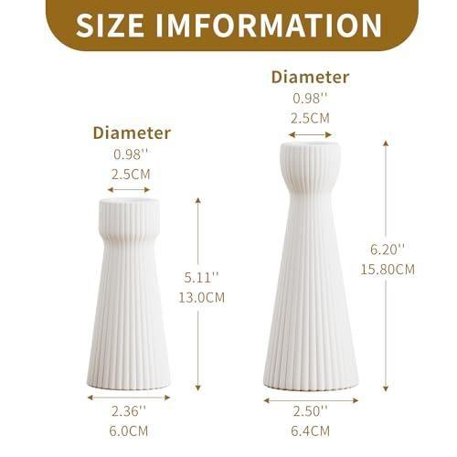 Yükseklikleri 13 cm ve 18 cm olan mumluklar, standart ince mumlar için ideal ölçülerde hazırlanmıştır. Tabanı 6,5 cm genişliğinde olan bu mumluklar, devrilmeye karşı dengeli bir tasarıma sahiptir. El yapımı seramik malzemeden üretilmiş olup, uzun süre kullanıma dayanıklıdır.