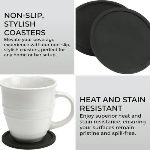 Bu silikon bardak altlıkları, günlük yaşamınıza pratiklik ve şıklık katan bir aksesuar. Yumuşak ve esnek siyah silikon malzemeden üretilmiş olan bu bardak altlıkları, masalarınızı içecek lekelerinden korumak için ideal bir çözüm sunuyor.
