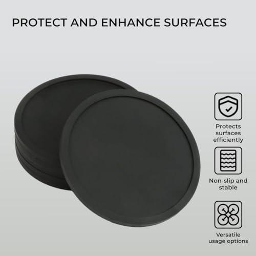 Çok yönlü kullanım imkanı sunan bu bardak altlıkları, kahve fincanlarından büyük bardaklara, hatta küçük saksılara kadar her şeyi yerleştirebileceğiniz pratik bir aksesuar. Siyah rengi sayesinde her ortama uyum sağlar ve şık bir görünüm yakalar.
