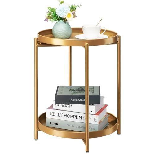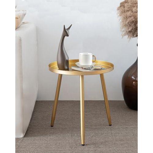 Altın Renkli İki Katlı Çok Fonksiyonlu Sini Sehpa