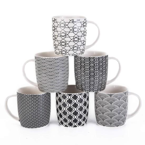 Bu fincan takımı, modern mutfakların vazgeçilmez aksesuarı olacak şekilde tasarlanmıştır. Toplam 6 adet fincan içeren set, siyah ve beyaz renklerin zarif geometrik desenlerini bir araya getiriyor. Her bir fincan yaklaşık 340 ml (11.5 oz) hacme sahip ve seramik malzemeden üretilmiştir.