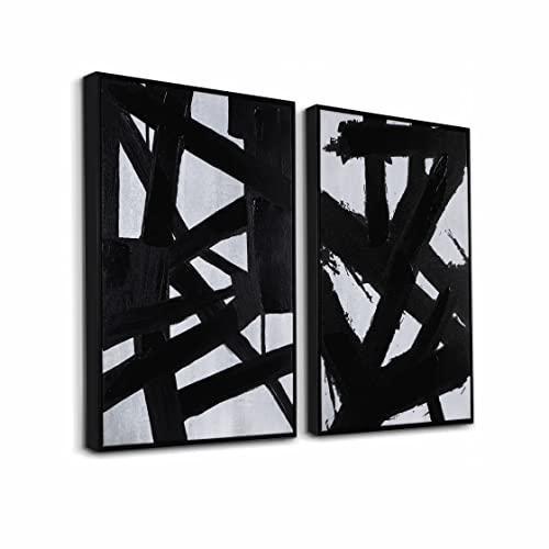 Minimalist ve çağdaş bir tasarıma sahip bu duvar tablosu, siyah ve beyaz renklerin güçlü kontrası ile dikkat çeken bir dekoratif üründür. İki parçadan oluşan tablo, soyut fırça darbeleri ve keskin çizgilerle modern bir estetik yaklaşım sergiler.