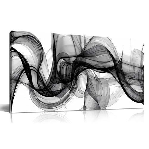 Modern Siyah Beyaz Dalgalı Tuval Tablo