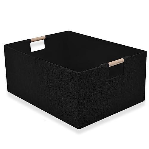 Dekorasyon ve organizasyon için fonksiyonel bir çözüm sunan bu ürün, modern ve pratik bir depolama sepeti olarak öne çıkıyor. Siyah renkli kumaş malzemeden üretilen sepet, ahşap tutma kollarıyla dikkat çekiyor.