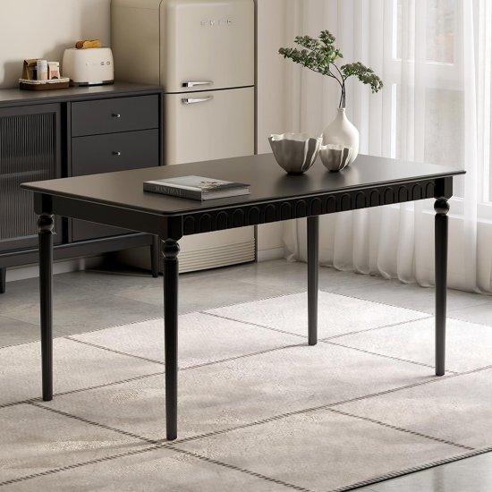 Bu yemek masası, zarif ve modern tasarımıyla herhangi bir yaşam alanına şıklık katan bir mobilya parçasıdır. Siyah rengi ile minimalist ve çağdaş bir görünüm sunar. Sağlam ahşap yapısı ve güçlendirilmiş ayakları ile oldukça dayanıklıdır.
