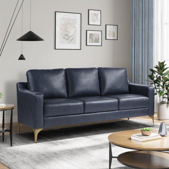 Modern Lacivert Suni Deri Üç Kişilik Koltuk