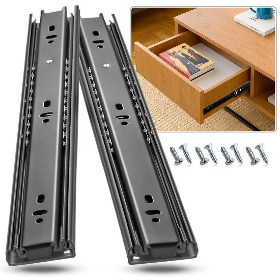 Bu sürgü dolap rayı, mobilya ve dolaplarınızın çekmece mekanizmasını güçlendirmek için ideal bir çözümdür. Sağlam siyah metal yapısıyla dayanıklı ve profesyonel bir görünüm sunar.