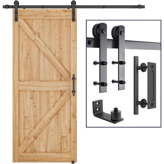 Kapı donanım seti, 91-102 cm genişliğindeki paneller için ideal boyutlandırılmıştır. Siyah metal ray ve askılar, dayanıklı çelik malzemeden imal edilmiştir. Özel I-şekilli askı mekanizması sayesinde kapı son derece yumuşak ve sessiz bir şekilde kayar.