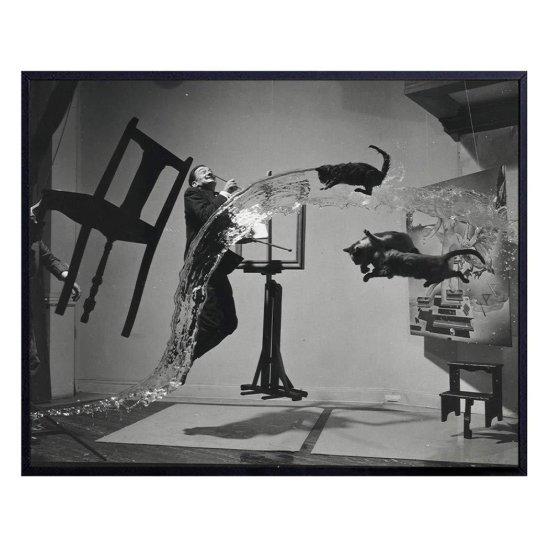 Fotoğrafta uçuşan sandalyeler, havada asılı duran kediler ve gizemli bir şekilde düzenlenmiş nesneler, izleyiciye sürreal bir deneyim sunuyor. Dali’nin imzası niteliğindeki bu görsel, sanatçının hayal gücünün sınırlarını zorlayan bir kompozisyon sergiliyor.