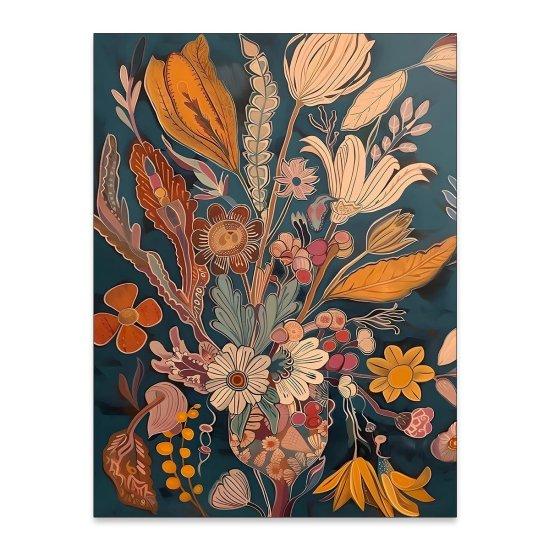 Doğal malzemelerden üretilen poster, zarif ve zamanı aşan bir estetik sunuyor. Çiçeklerin zengin renk paleti ve detaylı çizimleri, herhangi bir mekana ayrı bir canlılık katıyor.