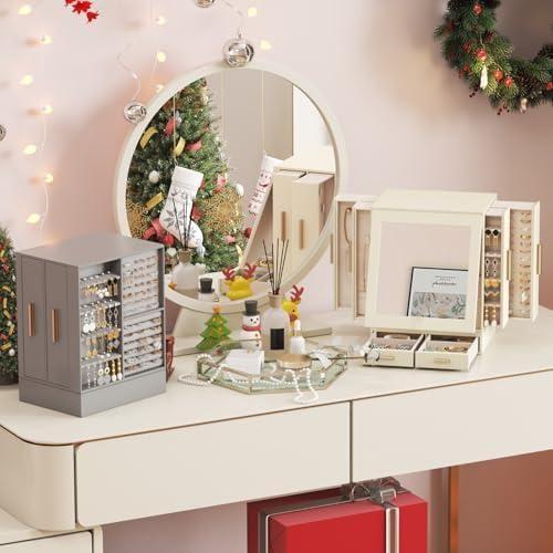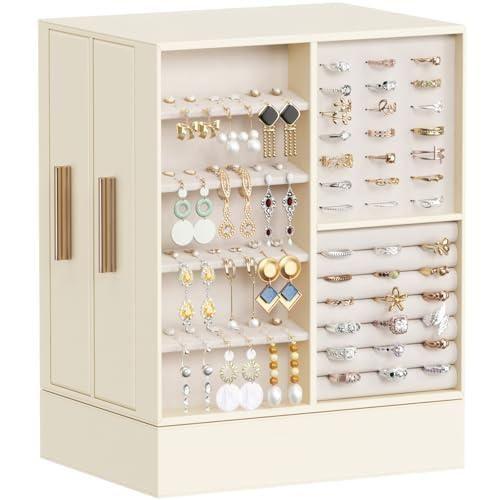 Krem Renkli Döner Kapaklı Modern Takı Organizeri