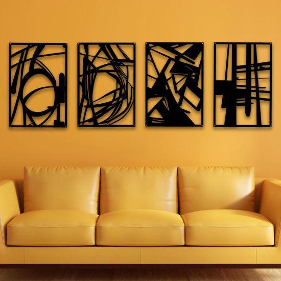 Modern ve soyut çizgilerle tasarlanan bu 4 parçalı metal duvar süsü, evinize benzersiz bir sanatsal hava katacak. İçi boş tasarımı sayesinde 3 boyutlu görsel etki yaratarak duvarlarınıza derinlik kazandırır.