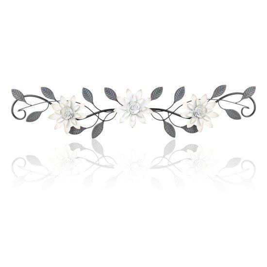 Tamamen metal yapısı ve el boyaması distrese beyaz rengi, gold merkezi ve vurguları sayesinde rafine bir görünüme sahiptir. UV korumalı ve hava koşullarına dayanıklı olan bu çiçek duvar süsü, mevsimler boyunca canlılığını korur.