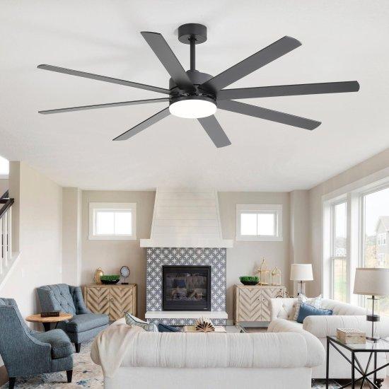 Modern Siyah 8 Kanatlı Geniş Alan Tavan Pervanesi