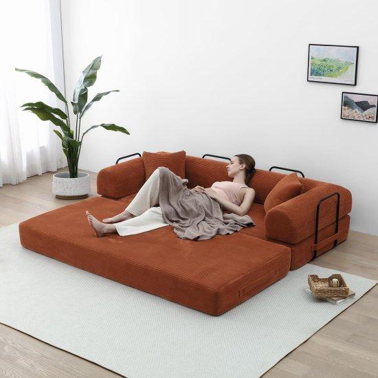 Turuncu Kadife Dokulu Modüler Açılır Köşe Koltuk