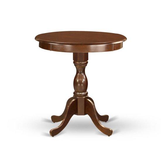 Bu zarif yuvarlak masa, geleneksel tasarımın şık bir örneğini sunuyor. Koyu kahverengi tonlarında ahşaptan üretilen masa, klasik bir pedestal ayak yapısına sahip. Yaklaşık 76 cm çapında yuvarlak bir masa yüzeyi bulunuyor.