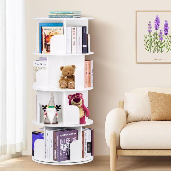 Bu ürün, küçük alanlara özel tasarlanmış pratik bir kitaplık çözümüdür. Dört katlı beyaz renkli döner mekanizmalı kitap rafı, dar ve köşe alanlara mükemmel uyum sağlar.