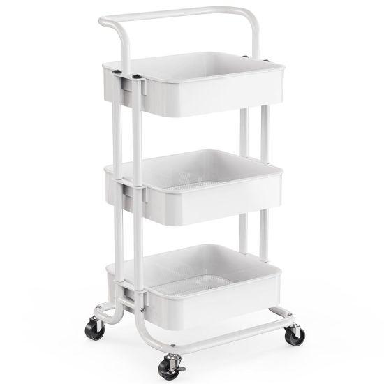 Beyaz Üç Katlı Hareketli Depolama Arabası