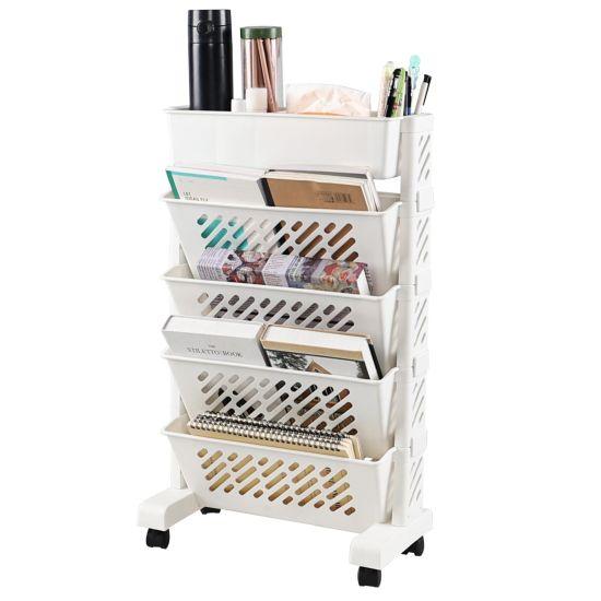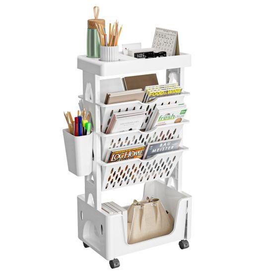 Bu beyaz tekerlekli kitaplık, çok yönlü kullanıma olanak sağlayan pratik bir depolama çözümüdür. Toplam 5 kattan oluşan ürün, evde, ofiste veya sınıfta kitap ve malzemeleri düzenlemek için ideal bir aksesuar.