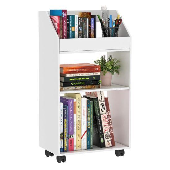 Modern Beyaz Döner Tekerlekli Kitaplık Düzenleyici